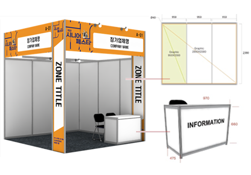주최측 조립식 부스 일괄 설치 (1부스 기준 : 가로 3M*3M)